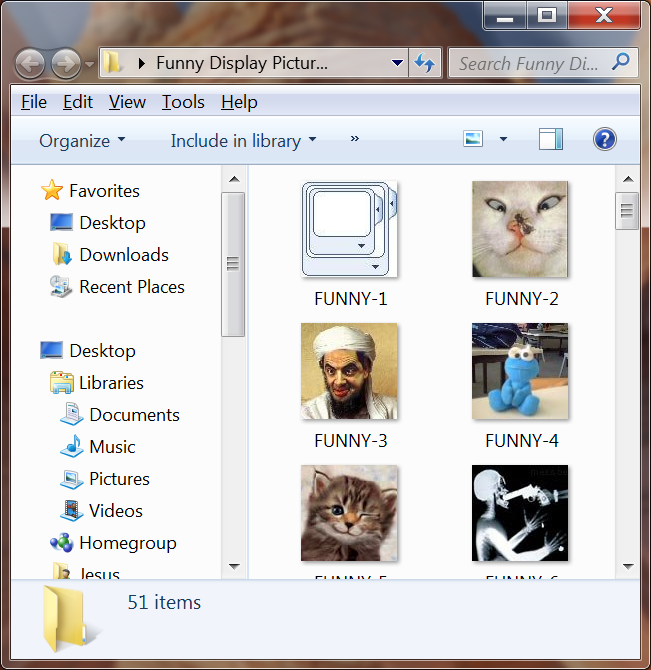 So, I do this search for funny pictures and I find this site (which I will not link you to) that offered a package of funny pics for sale. They posted a screen cap of the file you would receive if you paid them. Here are their “funny pics”