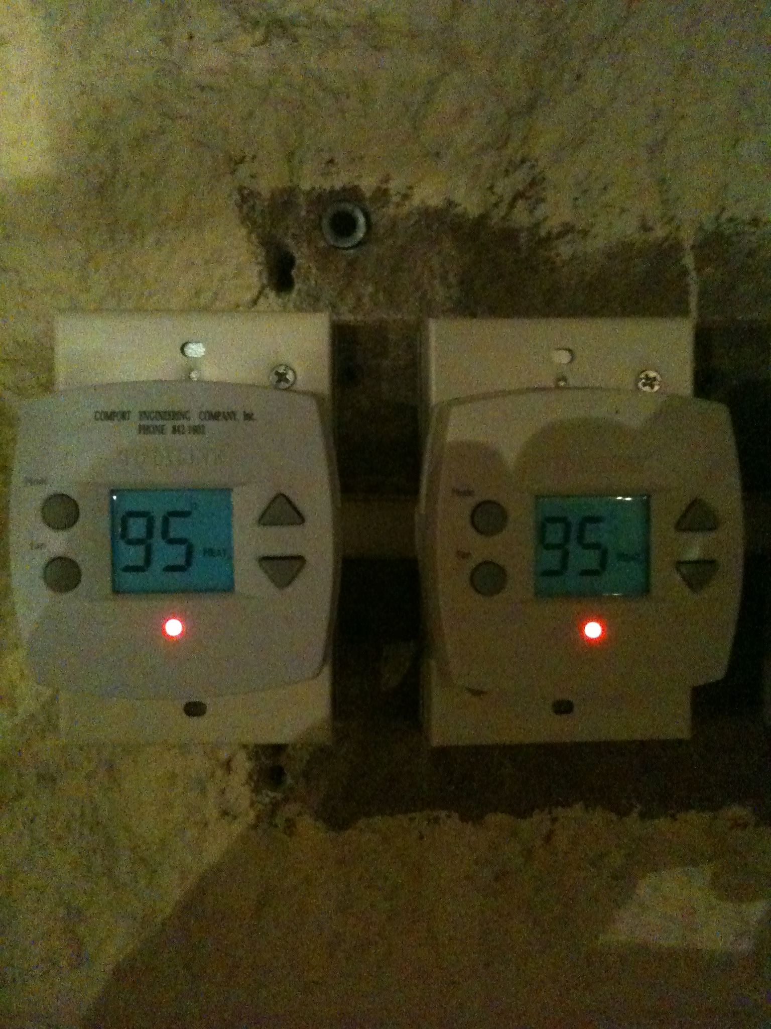 Unless you live on or near the sun, 95 degrees on two different thermostats equals a WHOLE LOTTA heatin’ going on! This H-VAC discussion leads us to the chamber in which you will be sleeping and working. Something to look for in a quality personal thermostat should resemble something relatively modern like this: