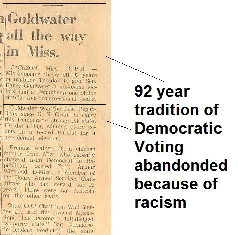 “republicans” who originally opposed the Civil Rights Act of 1964. Barry Goldwater wanted to abolish Medicare. Does that sound familiar to anyone but me? Apparently, that is a good idea to the throngs of elderly Mississippians who voted for Alan Nunlee.