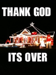 The tree has been put away or discarded. The newly untangled lights start their year long re-tangling process. The plastic Rudolphs, Santas, Jesuses ( I admit I do not know the plural of Jesus.), and plates with Frosty on them are all put into their storage containers and forgotten about by everyone for another 11 months. Everyone except my wife.